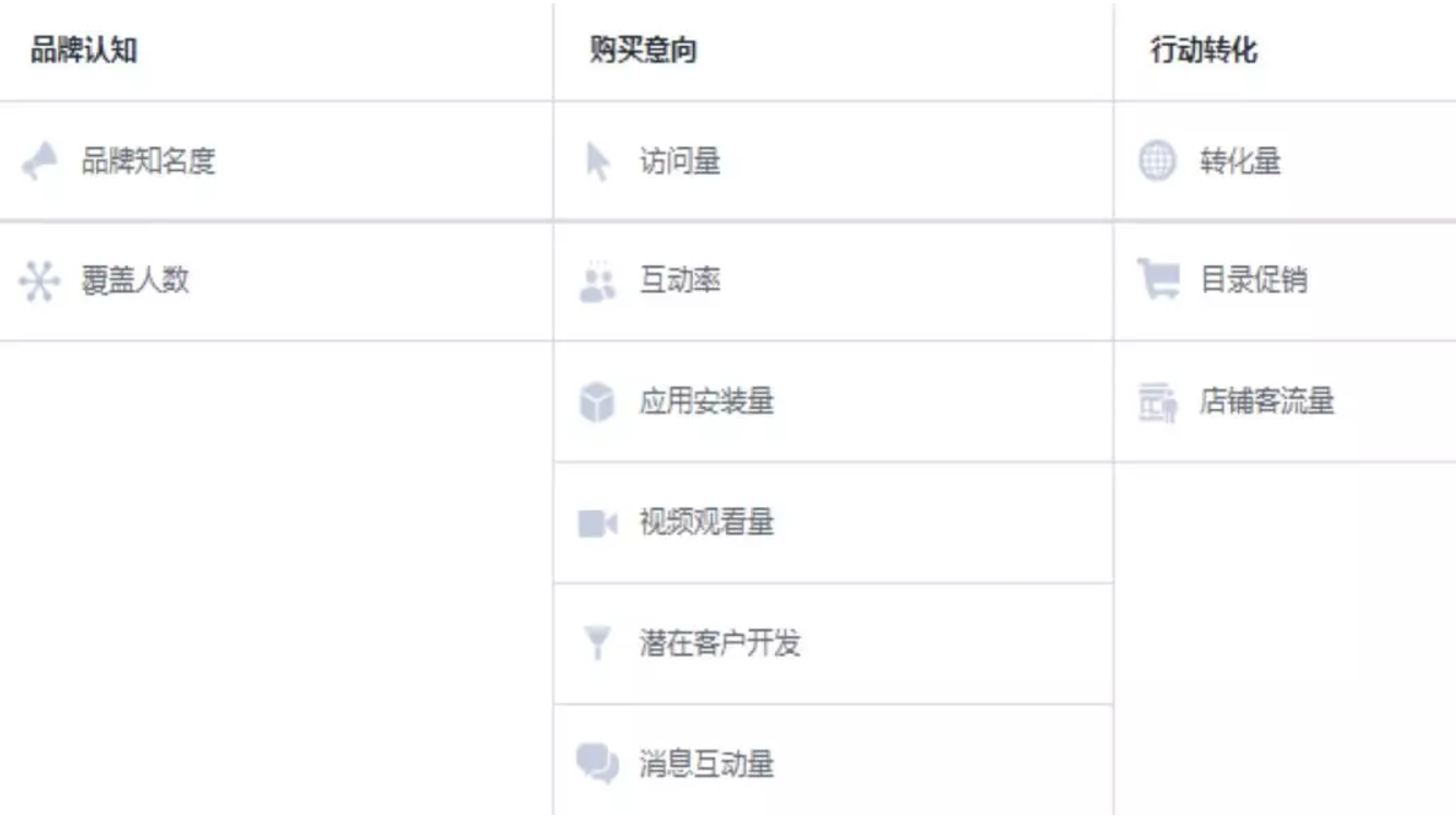 (2)購買意向:Facebook 提供多個廣告目標(biāo),可助您實(shí)現(xiàn)業(yè)務(wù)目標(biāo)。廣告目標(biāo)是指您希望用戶在看到廣告時采取的操作。購買意向目標(biāo)會吸引受眾開始考慮您的業(yè)務(wù),并進(jìn)一步了解業(yè)務(wù)詳情。
