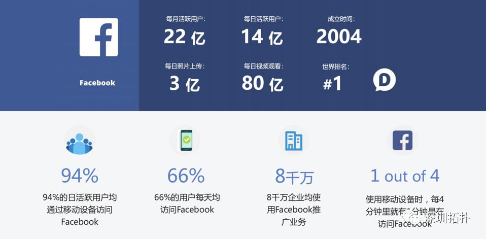 全球超過22億月活躍用戶;在超過90%的 國家都是當(dāng)?shù)厥褂寐实谝坏纳缃唬ǔ砹_斯、伊朗、中國、日本、韓國、朝鮮等),具有廣泛性。