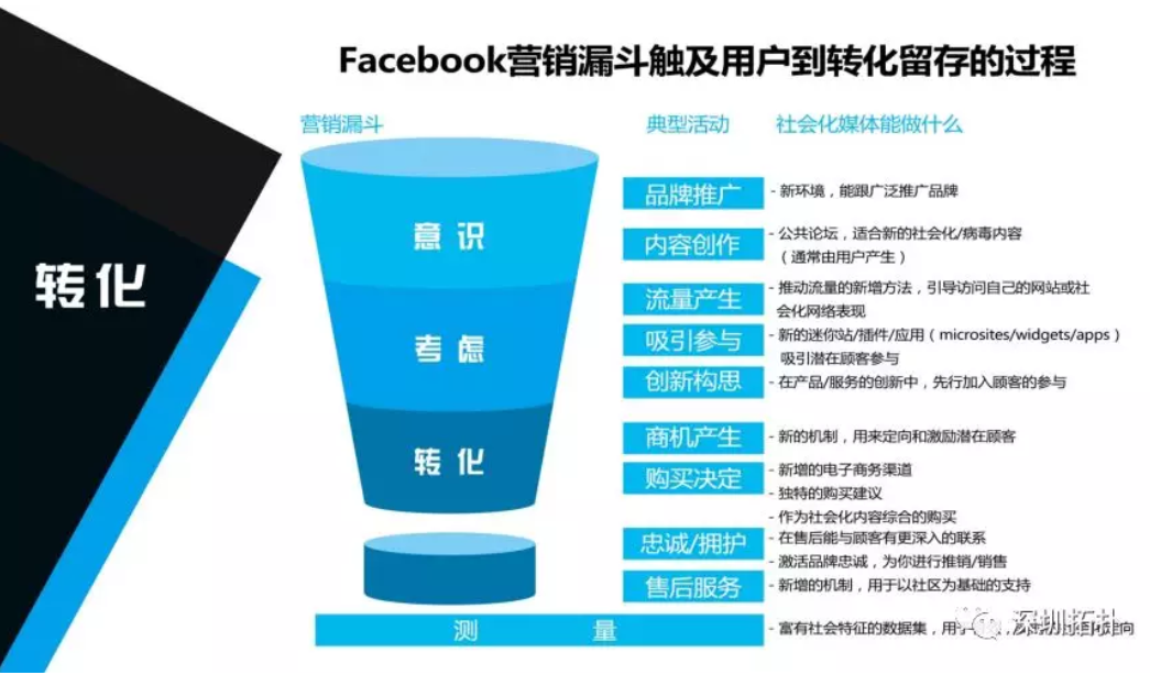 Facebook是社交媒體工具,以用戶社交體驗(yàn)為重,商業(yè)轉(zhuǎn)化次之。目前跨境電商無法直接在Facebook上完成銷售環(huán)節(jié)。作為用戶,使用Facebook的目的也是出于社交,而非購買產(chǎn)品。因此,賣家不應(yīng)將Facebook看做銷售平臺,而應(yīng)遵循社交的特征,以正確的內(nèi)容展示給正確的人群,促進(jìn)用戶人群從認(rèn)知到熟悉到轉(zhuǎn)化到留存的過程。