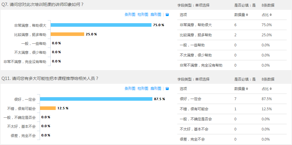 在已經(jīng)參與到我們調(diào)查的100多名學(xué)員中,課程滿意度超過96%,“愿意推薦”課程的比例超過92%