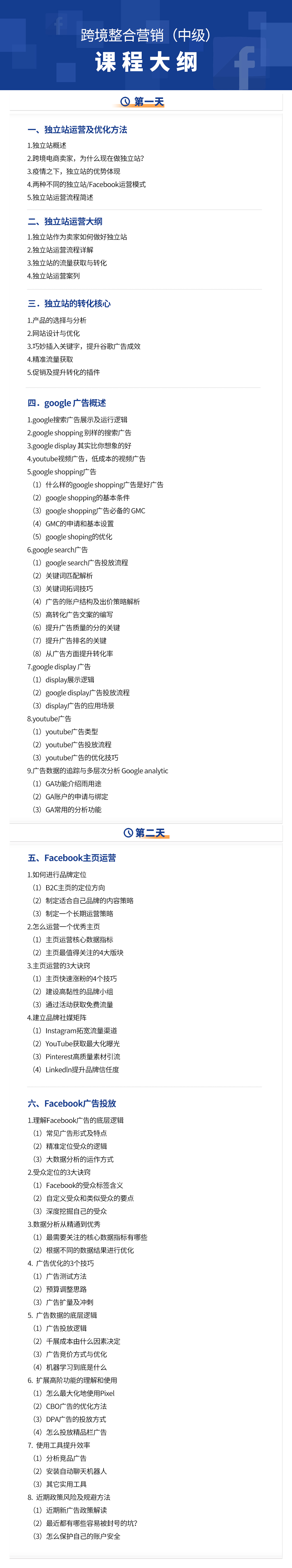 深圳拓?fù)銯acebook運(yùn)營培訓(xùn)課程,兩天時(shí)間,兩大模塊,幫助你系統(tǒng)構(gòu)建跨境營銷能力體系與實(shí)操能力,讓你可以輕松應(yīng)對(duì)Facebook運(yùn)營難題!