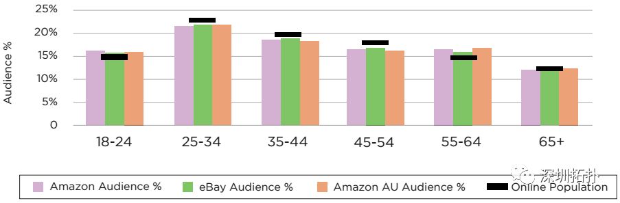 亞馬遜受眾與eBay在線用戶年齡分布情況