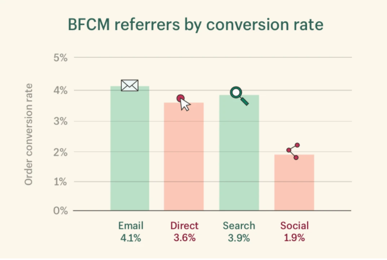 Shopify研究了黑五網(wǎng)一期間各種流量來源的表現(xiàn)。盡管這些渠道不一定能獲得最多的訂單,但數(shù)據(jù)表明,但它們確實(shí)是商店所有者在尋找合格流量時(shí)要考慮的重要來源。