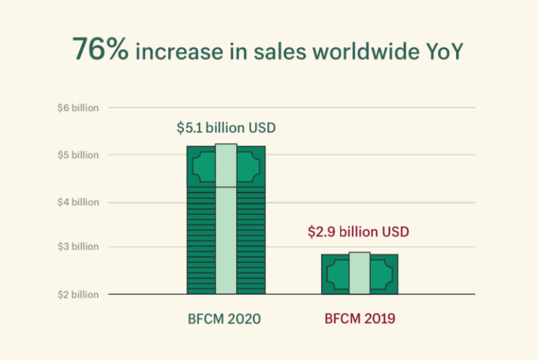 今年全球因?yàn)樾鹿诖罅餍袑?dǎo)致許多企業(yè)被迫關(guān)門,而從今年的黑五網(wǎng)一數(shù)據(jù)中,我們可以看到無數(shù)小型企業(yè)已經(jīng)開始利用Shopify全面展示其能力,想必該趨勢(shì)也就將在2021年繼續(xù)延續(xù)。
