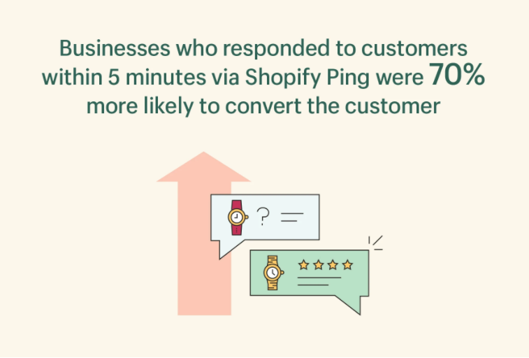 最后,無論是在社交媒體平臺(tái)上還是通過SMS做出響應(yīng),品牌做出的響應(yīng)越快,他們就越有可能獲得銷售。 Shopify的數(shù)據(jù)表明,在5分鐘內(nèi)回復(fù)購物者聊天的商務(wù)人士從該購物者那里獲得銷售的可能性要高出70%。