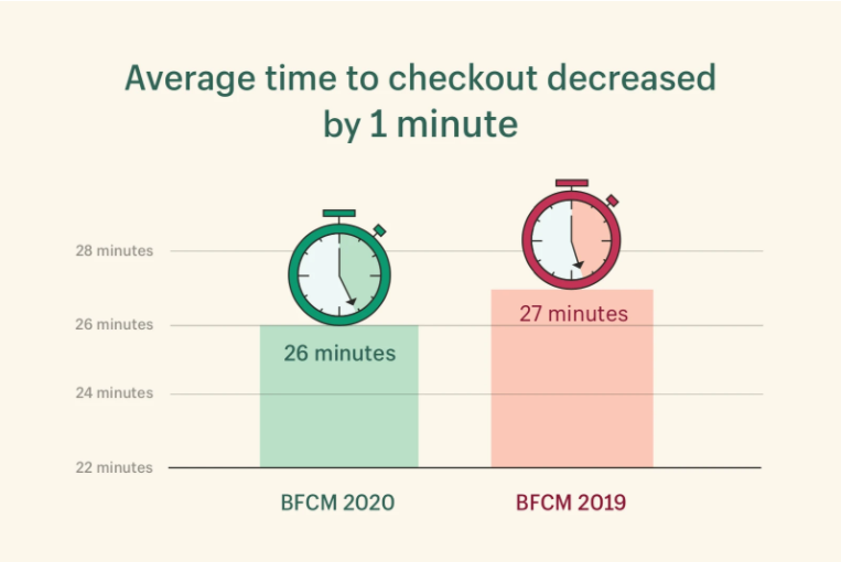 事實(shí)證明,這也貫穿了整個(gè)最繁忙的購物季節(jié)。在黑五網(wǎng)一期間,通過Shop Pay帶來的銷售額同比增長(zhǎng)129%,自去年以來,平均結(jié)賬時(shí)間減少了整整一分鐘。