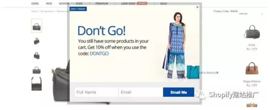 當(dāng)客戶在你的店鋪逛了一會(huì),但是最終還是沒(méi)有下單,在他們要關(guān)閉店鋪離開的時(shí)候,彈一個(gè)窗口出來(lái),顯示一個(gè)exit offer。