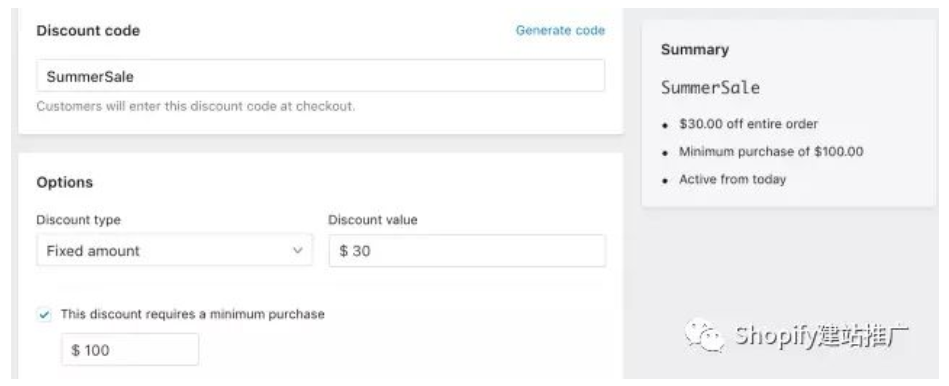 Shopify 后臺(tái)提供了四種打折優(yōu)惠的方式。