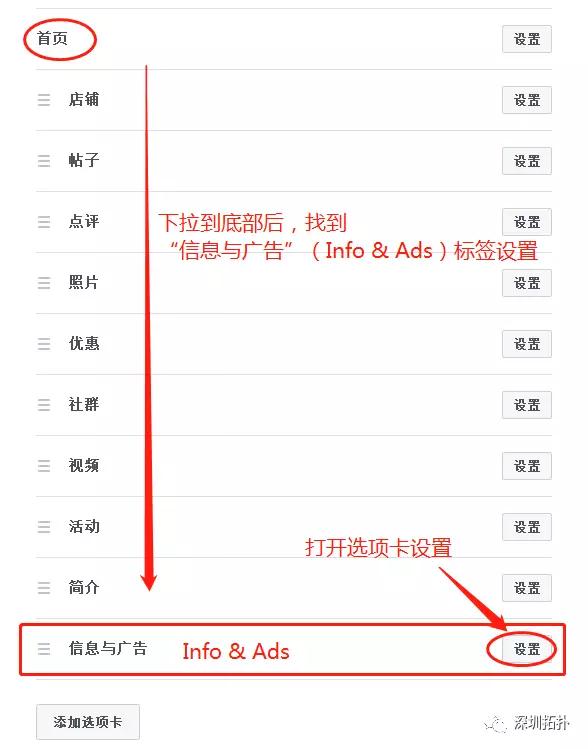 (2)看到“首頁”后,下拉到底部,點(diǎn)擊“添加選項(xiàng)卡”: