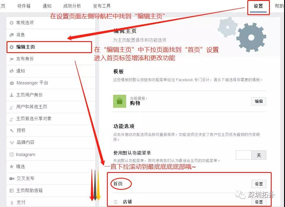 (1)以管理員身份或者BM身份,進(jìn)入到主頁,點(diǎn)擊右上欄“設(shè)置”,然后點(diǎn)擊“編輯主頁”: