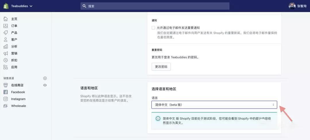 今天,我們很高興地宣布,Shopify簡(jiǎn)體中文版全面上線了!您可以按照下圖指示在Shopify后臺(tái)內(nèi)輕松切換。也歡迎您給我們繼續(xù)提出更多建議。